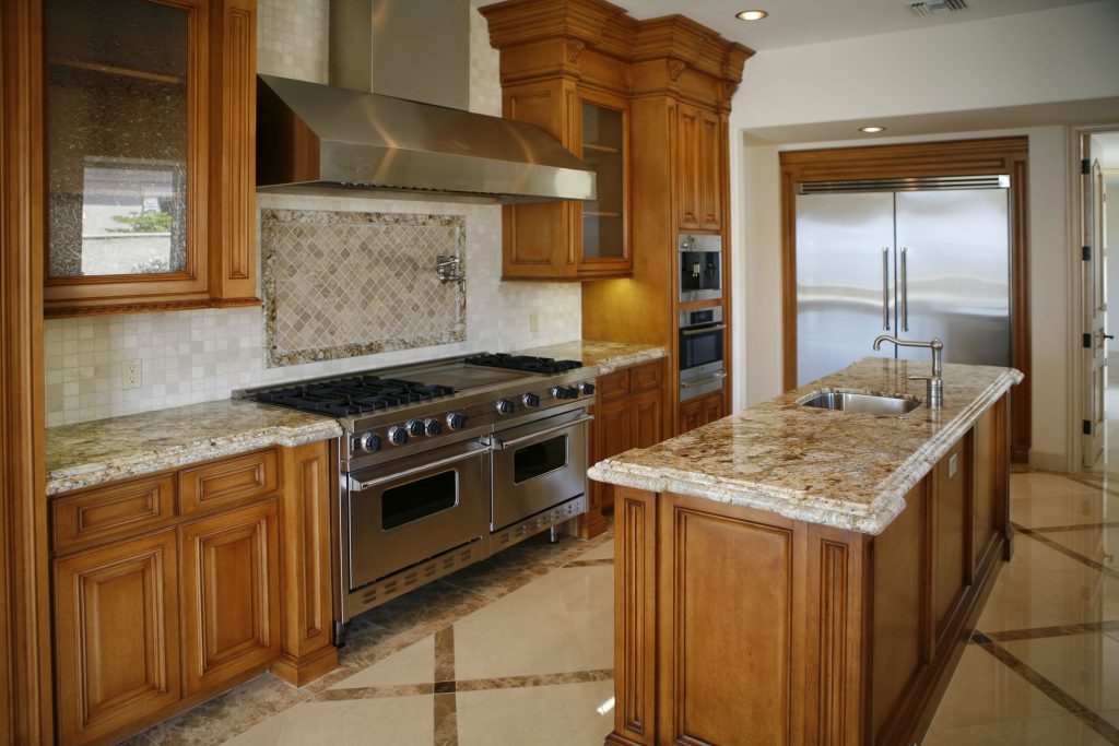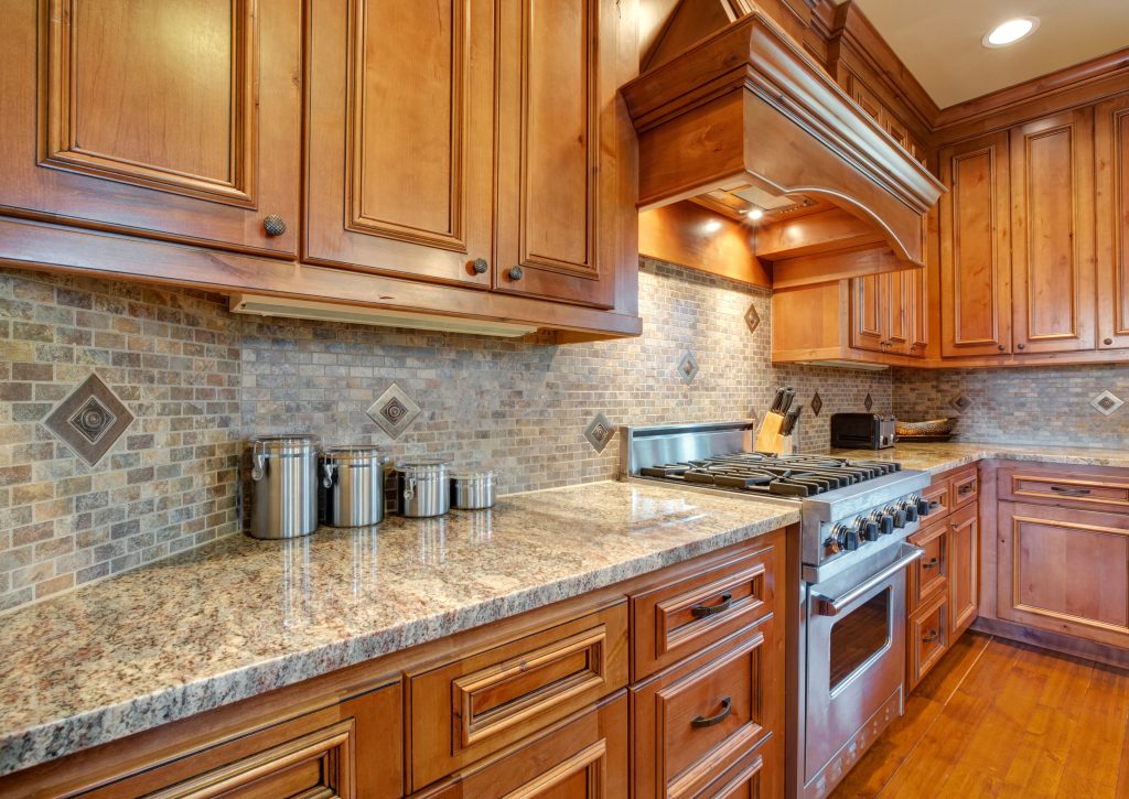 Granite Empire of Huntsville provides a variety of beige and cream granite kitchen countertops in Huntsville, AL, perfect for achieving a harmonious look with oak cabinets.